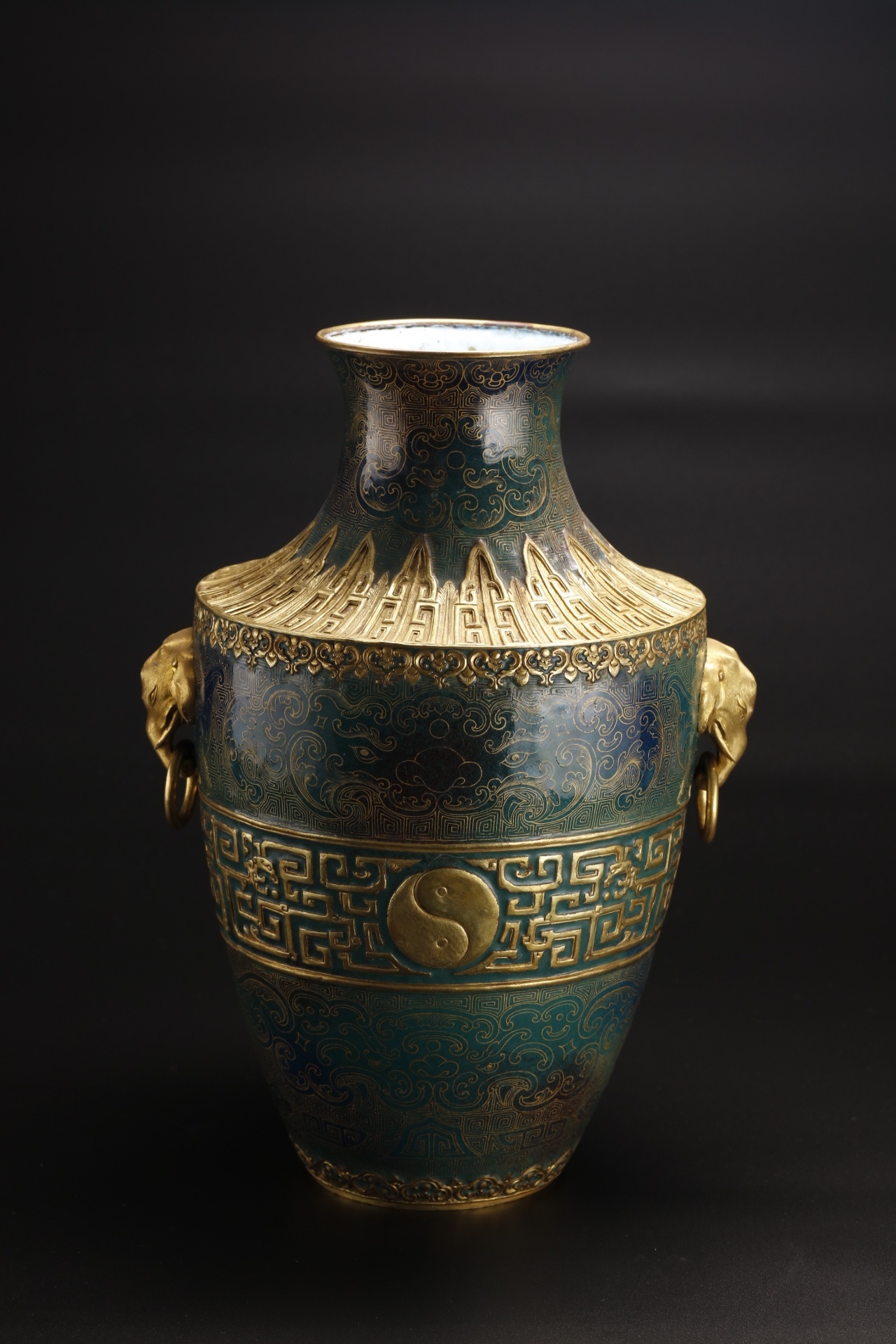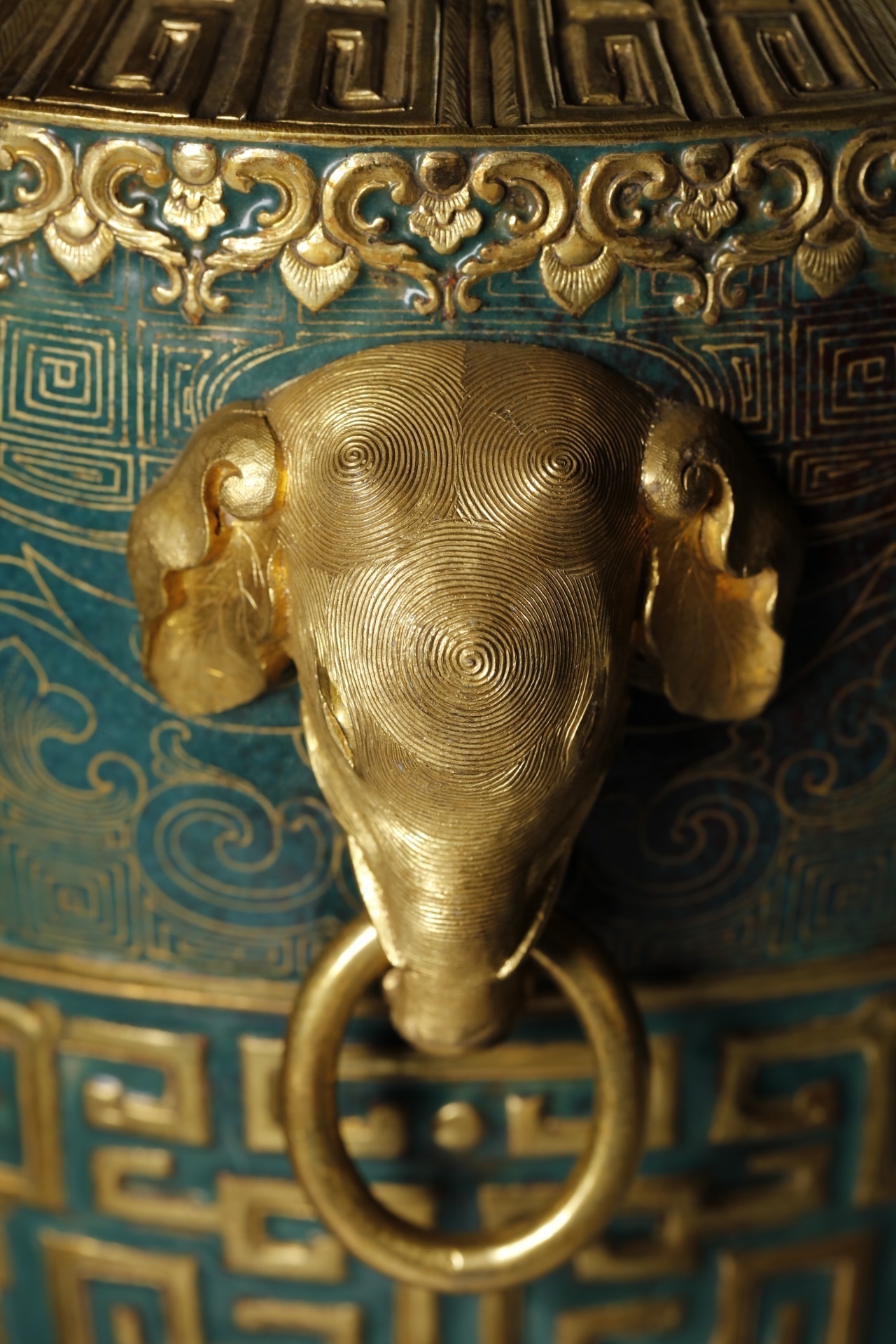 铜胎画珐琅绿釉鎏金双铺首活环尊 清代 广东省博物馆藏