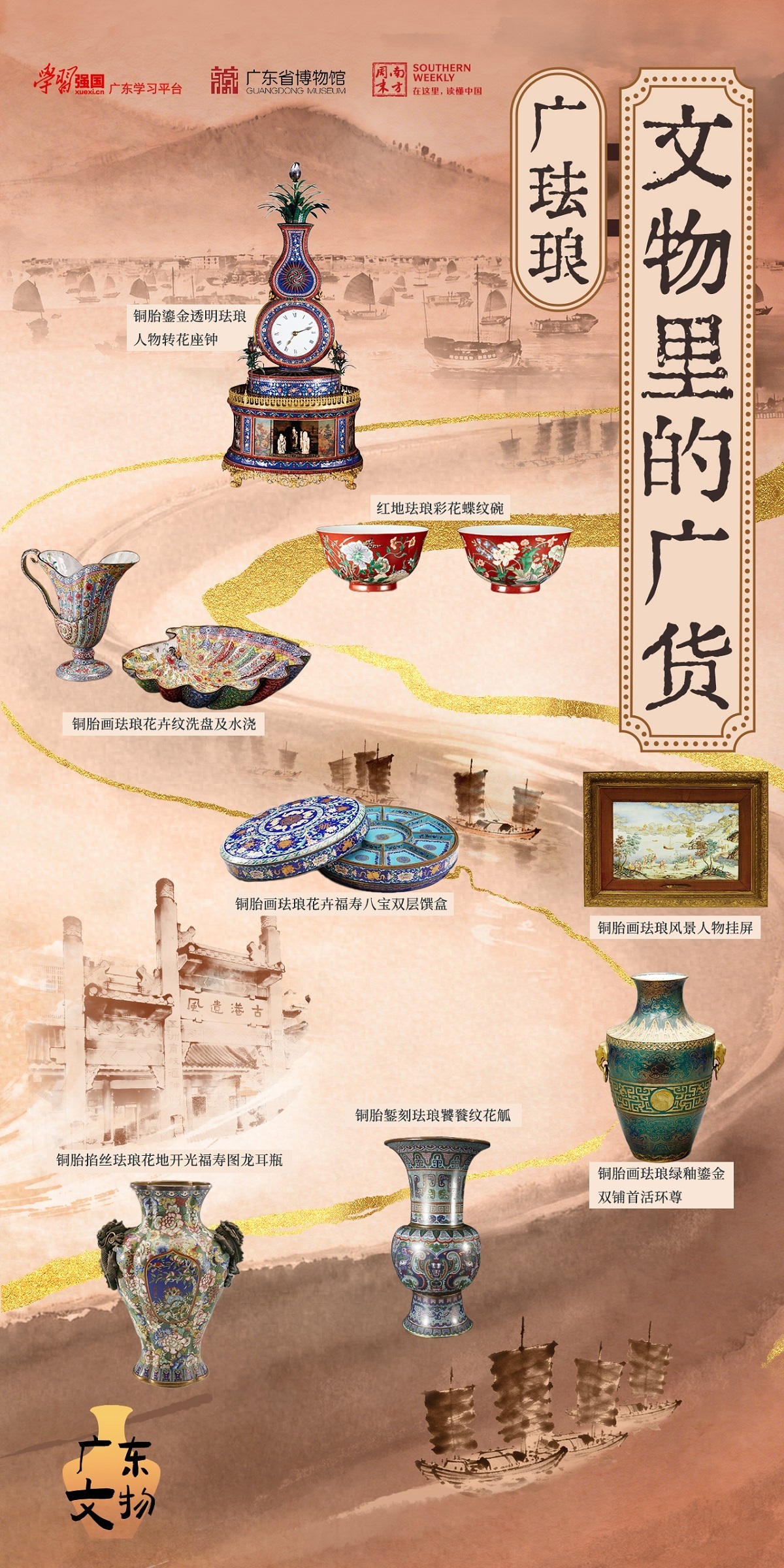 时至今日,工业化量产的金属胎珐琅,即我们熟悉的“搪瓷”,早已深入日常生活,而广珐琅所承载的美学意蕴与开拓精神,却历久弥新,生生不息。其跨越时空的蝶变之旅,仍在无声述说着广货行天下的故事。