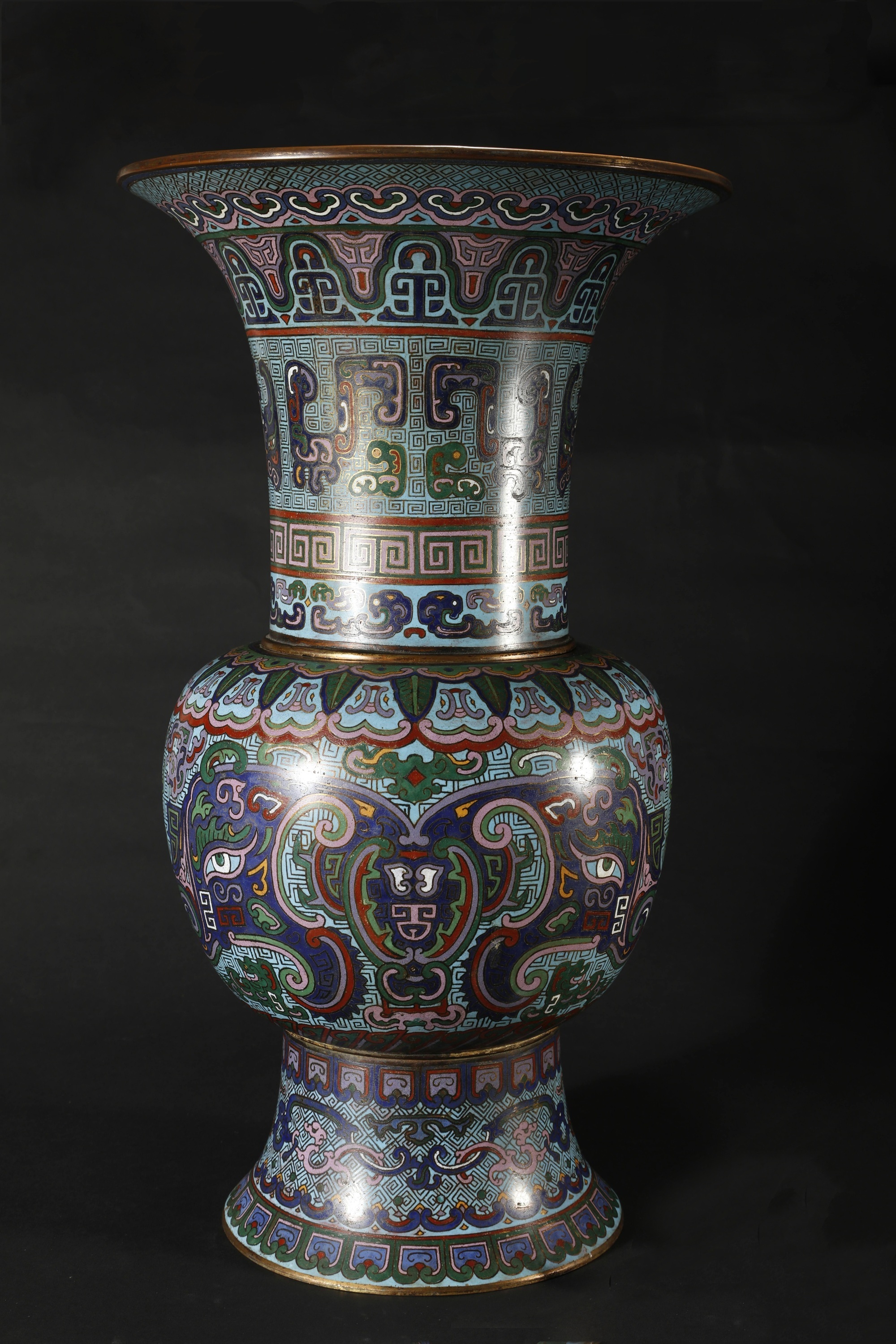 铜胎錾刻珐琅饕餮纹花觚 清代 广东省博物馆藏