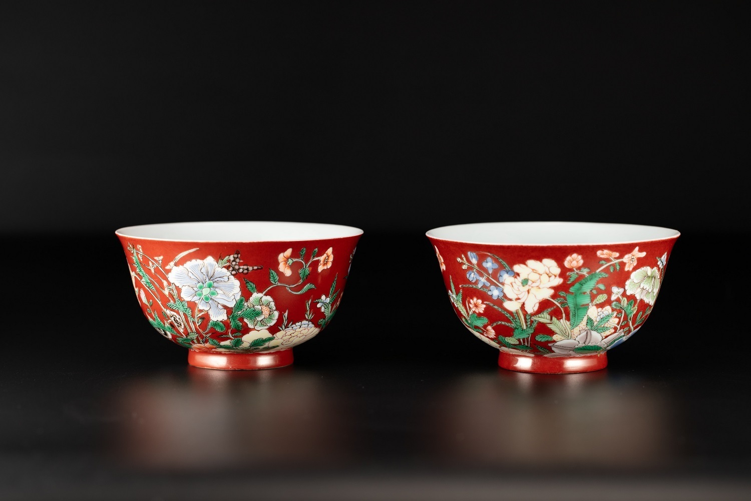 红地珐琅彩花蝶纹碗 清康熙时期 广东省博物馆藏