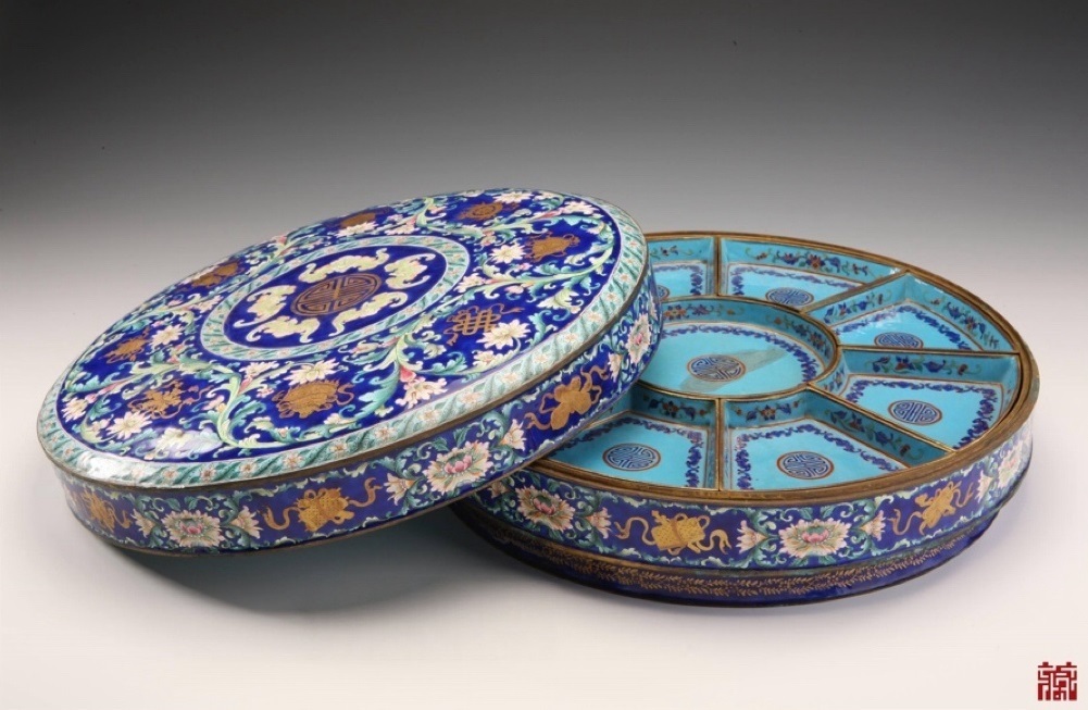 铜胎画珐琅花卉福寿八宝双层馔盒 清乾隆时期 广东省博物馆藏